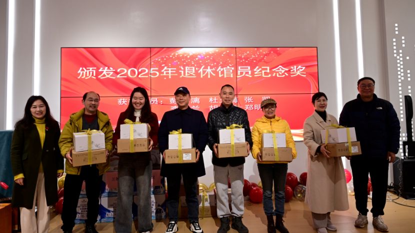 致辞过后,颁奖环节温情启幕。为表彰先进、传承奉献精神,图书馆为退休馆员、在馆工作30年馆员及特别贡献馆员颁发纪念品。退休馆员是图书馆发展的见证者与开拓者,他们数十年如一日坚守岗位、深耕服务;在馆工作30年的馆员始终初心如磐、敬业奉献;特别贡献馆员则在2025年奔赴学校的其他工作岗位勇挑重担。馆领导为获奖馆员逐一颁奖,台下响起阵阵热烈的掌声,既是对获奖者的致敬,也传递着全体馆员的敬意与祝福。