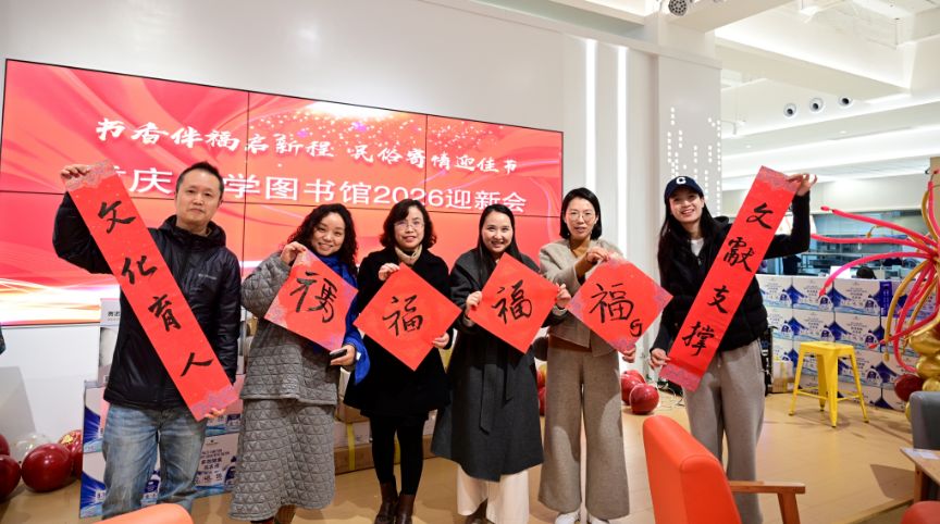为迎接即将到来的2026年,营造温馨祥和的节日氛围,增强馆员凝聚力与归属感,传承中华优秀民俗文化,12月19日,图书馆在虎溪校园隆重举办“书香伴福启新程 民俗寄情迎佳节”迎新年联欢活动。全体馆员齐聚一堂,共话过往耕耘,共迎崭新一年。
