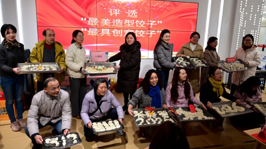 包饺子、吃饺子环节则将活动氛围推向高潮。馆员们分工协作、默契配合,包饺子的动作娴熟有条不紊。有的手法精湛,包出的饺子造型规整;有的大胆创新,做出各具特色的创意饺子。欢声笑语中,一个个饱满圆润的饺子很快摆满了餐盘。待热气腾腾的饺子端上桌,大家围坐在一起品尝着自己的劳动成果,畅谈工作与生活中的趣事,欢乐在脸庞绽放,幸福在心间流淌,馆员们充分感受到了图书馆“大家庭”的温馨与和睦。